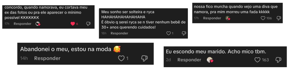 Vi também comentários dizendo que quando descobrem que uma diva está namorando, ela “perde um pouco da aura de diva”. Talvez isso reflita uma percepção histórica: por muito tempo, mulheres eram socialmente incentivadas a se diminuir dentro de relacionamentos, e, de certa forma, essa visão ainda persiste. Passamos a acreditar que a mulher está se diminuindo — e, ao mesmo tempo, acabamos por diminuir a admiração por ela também.